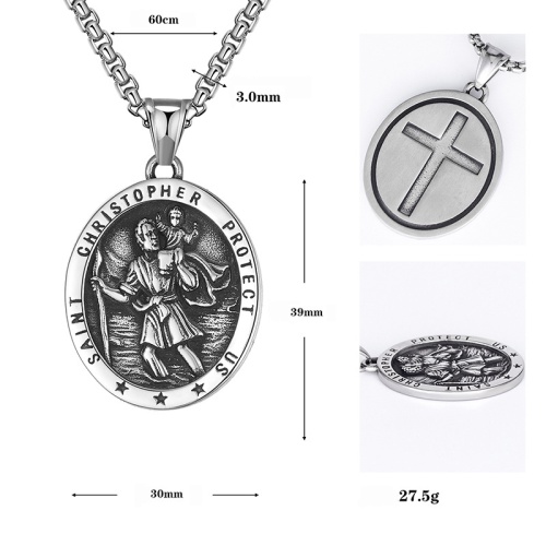 潮流鈦鋼男仕飾物 聖克裡斯托弗獎牌吊墜頸錬