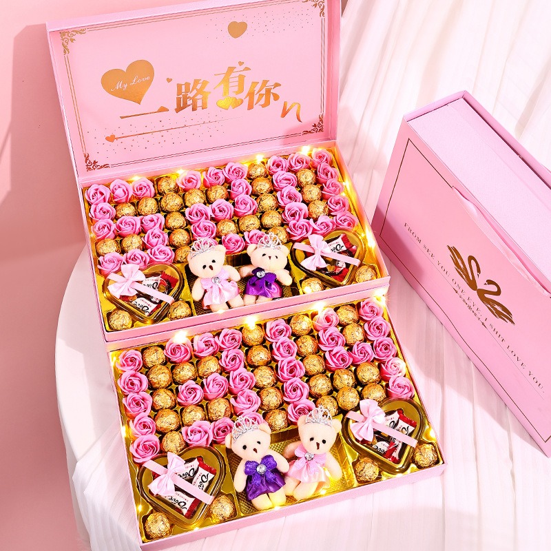 愛,需要被訴說,更需要被銘記。這款「一路有你-雙層天鵝巧克力禮盒」,以永生玫瑰、浪漫暖燈、手寫賀卡與精緻巧克力,織就一場充滿儀式感的愛的告白。無論是情人節、生日,或是任何想說「我 更只看你」的時刻,它都是你最深情浪漫的代言。