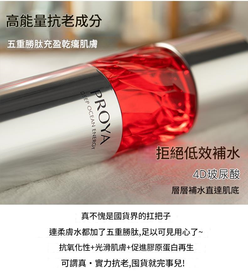 拒絕低效補水,4D玻尿酸層層補水直達肌底,搭配五重胜肽精研配比,精細化抗老改變可見。抗氧化、光滑肌膚、促進膠原蛋白再生,一瓶多效。