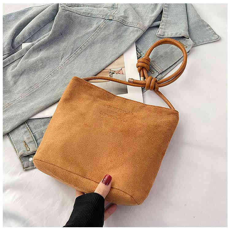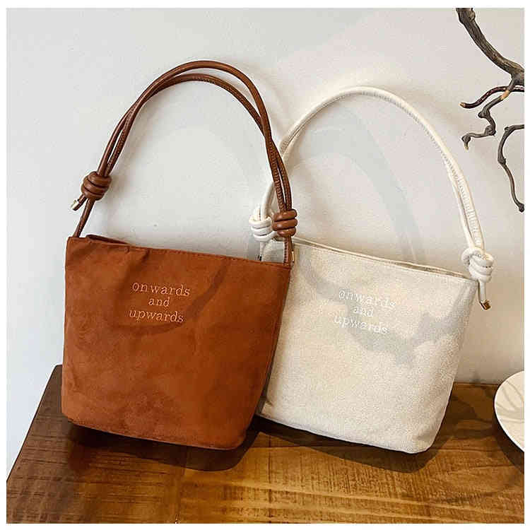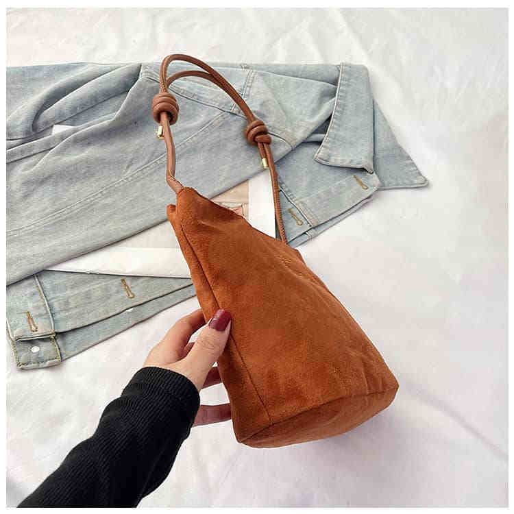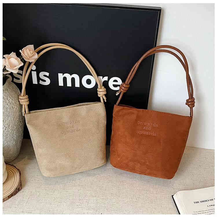 秋冬2025新款麂皮絨復古水桶包
