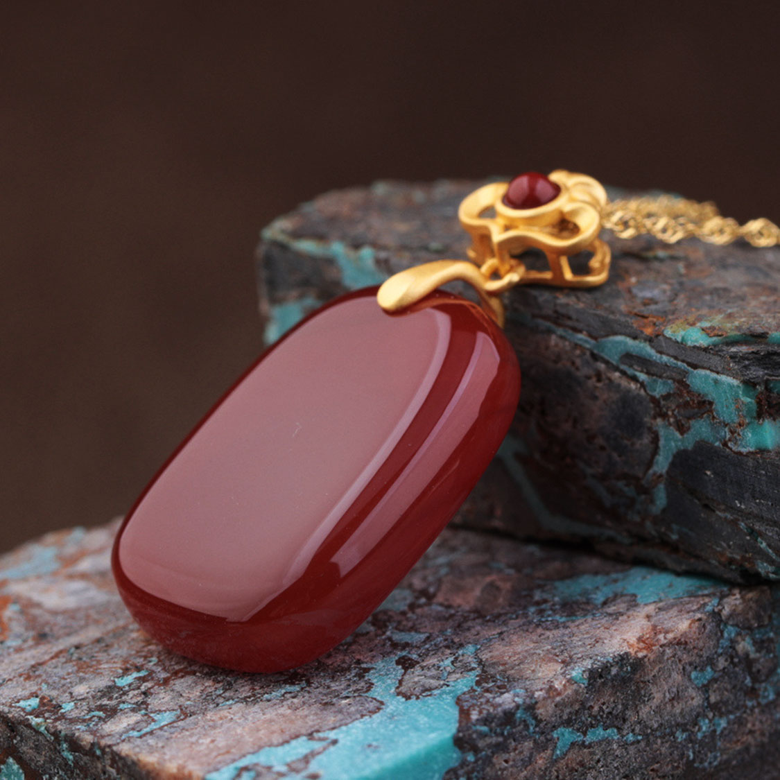 棗紅色象徵喜慶、吉祥與好運,長方牌又有「平安無事牌」的寓意,適合上班、約會或重要場合佩戴,也很適合作為送長輩、送伴侶的祝福禮物。