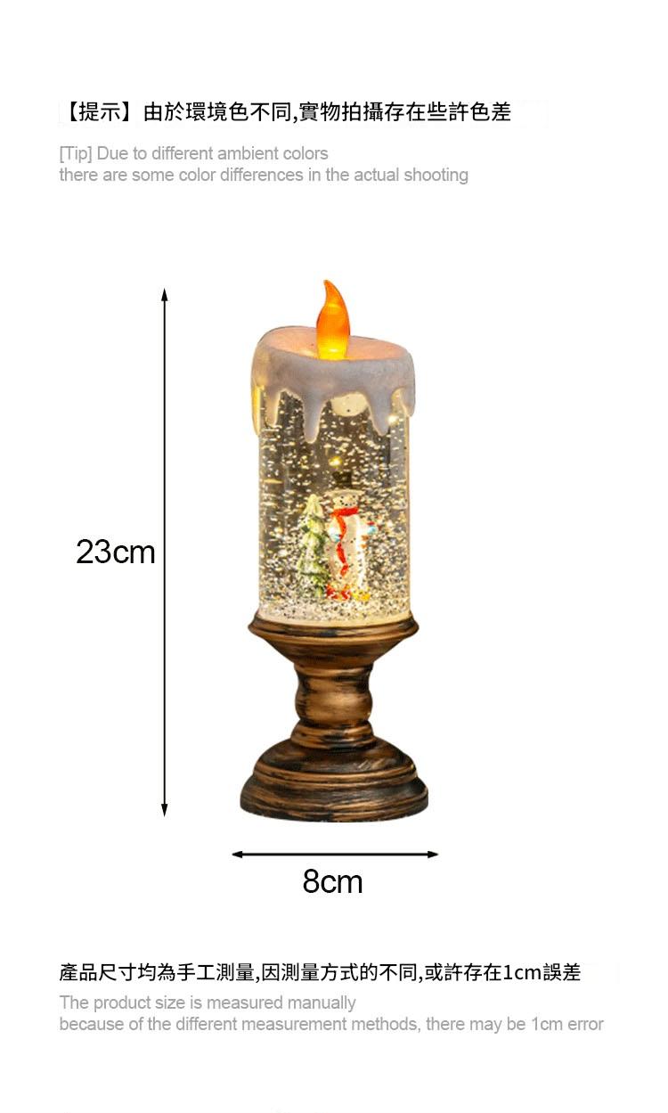 • 內置亮片自動旋舞如飄雪,配合暖黃燈芯,營造夢幻雪景視覺層次。​