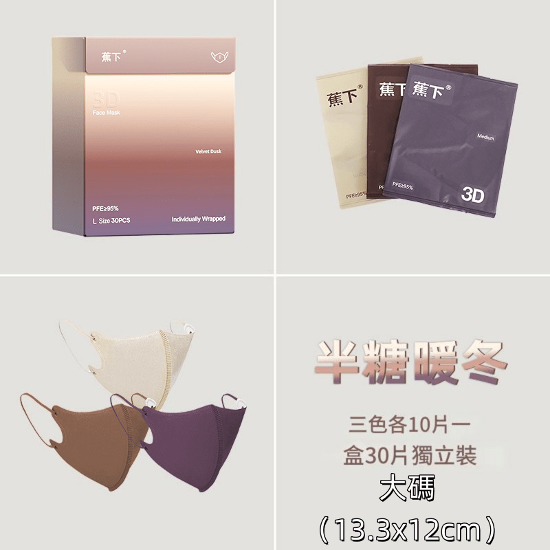 最高可賺取 44 積分.健康護理產品, 戶外用品蕉下 3D立體口罩30片獨立裝 大碼(13.3×12cm)
