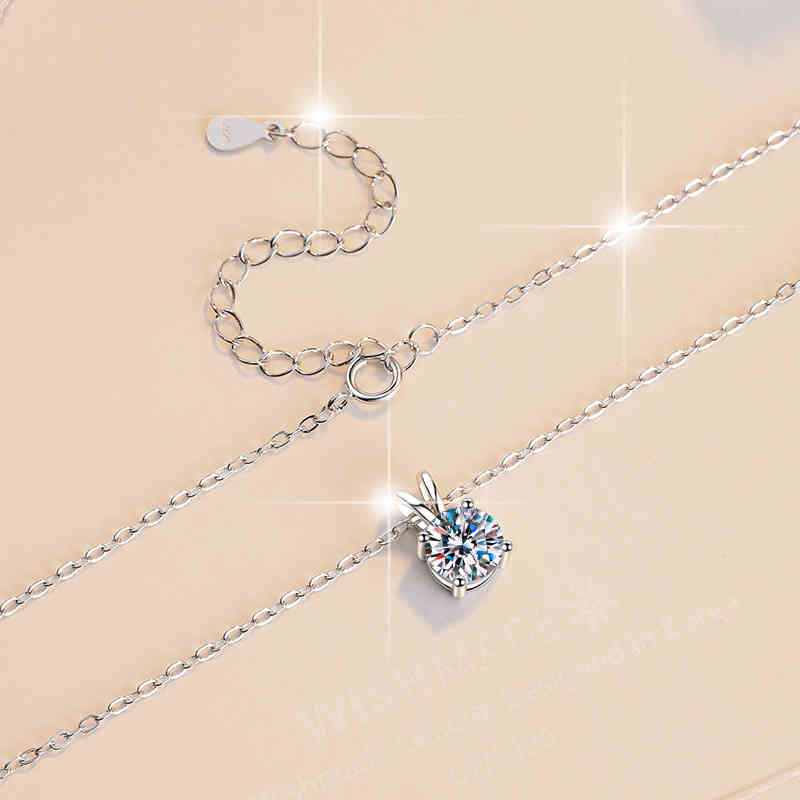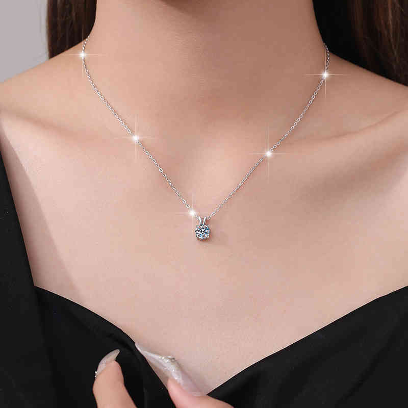 輕奢小眾設計簡約時尚s925純銀四爪1卡莫桑鑽吊墜項鍊