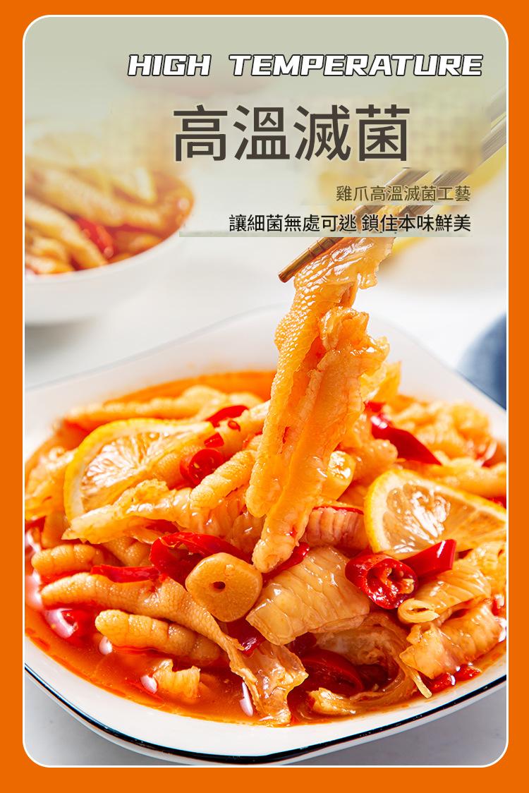 堅持高溫減菌工藝,鎖住雞爪本身的鮮美與彈性,同時確保食品安全。本產品通過食品安全認證(食品生產許可證號:SC10433030404944),讓您吃得開心又安心。