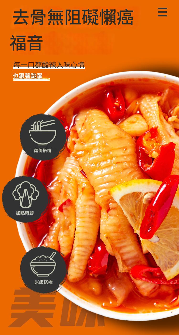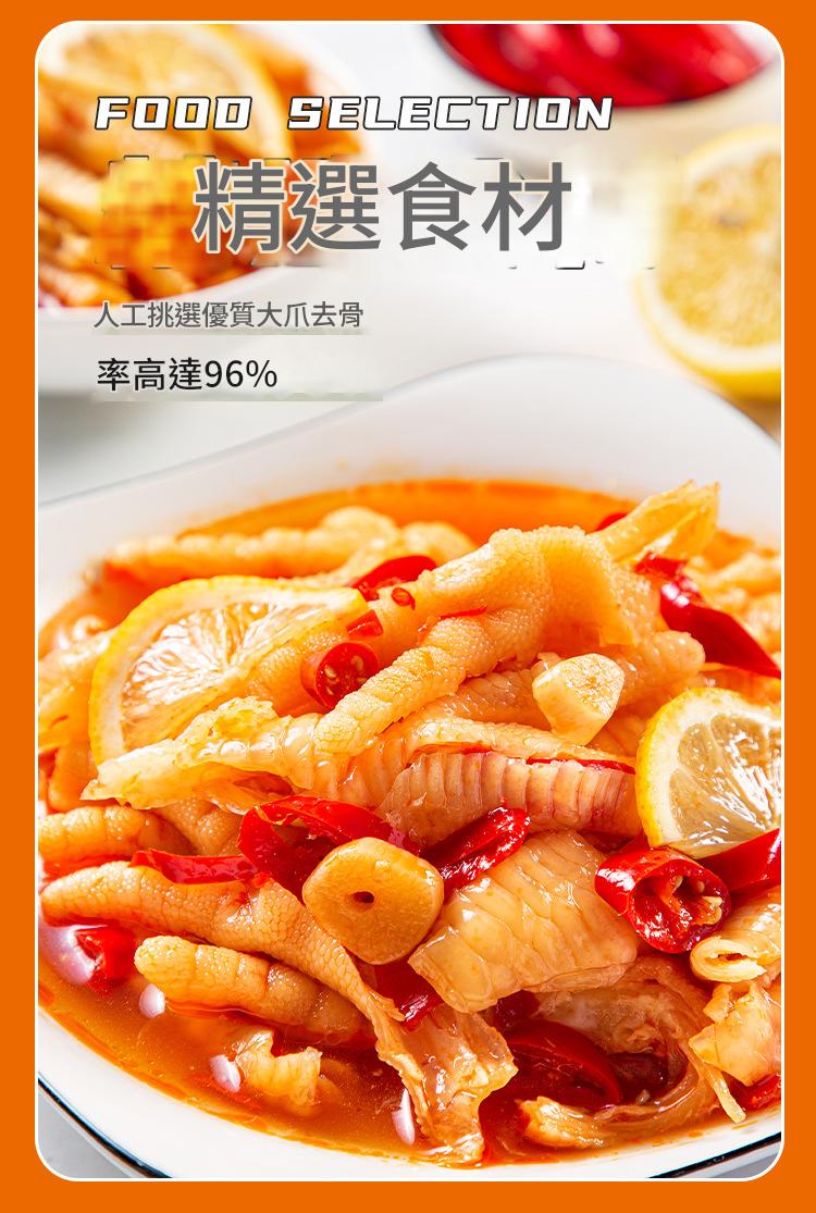 嚴選優質A級大爪,每一隻雞爪都經過人工細心去骨,去骨率高達96%!一入口就是滿滿的Q彈肉感,讓您告別吐骨的麻煩,真正做到「懶人福音」。