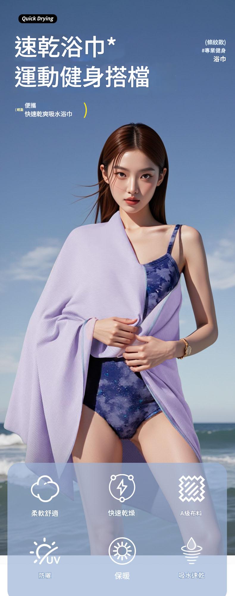 尺寸 30x100cm,輕巧易捲收,適用於 健身、游泳、溫泉、旅行、日常居家 等多種場景,隨身攜帶無負擔。