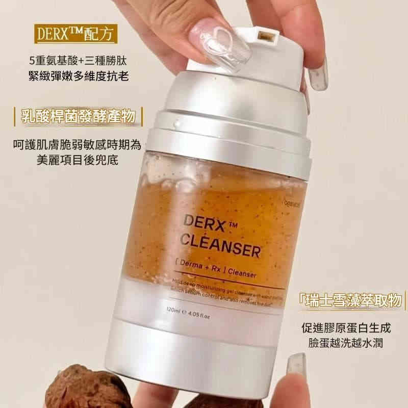 ・DERX™ 專利配方:融合 5重氨基酸 + 3種勝肽,多維度對抗初老,清潔同時促進膠原蛋白生成,越洗越緊緻水潤。
