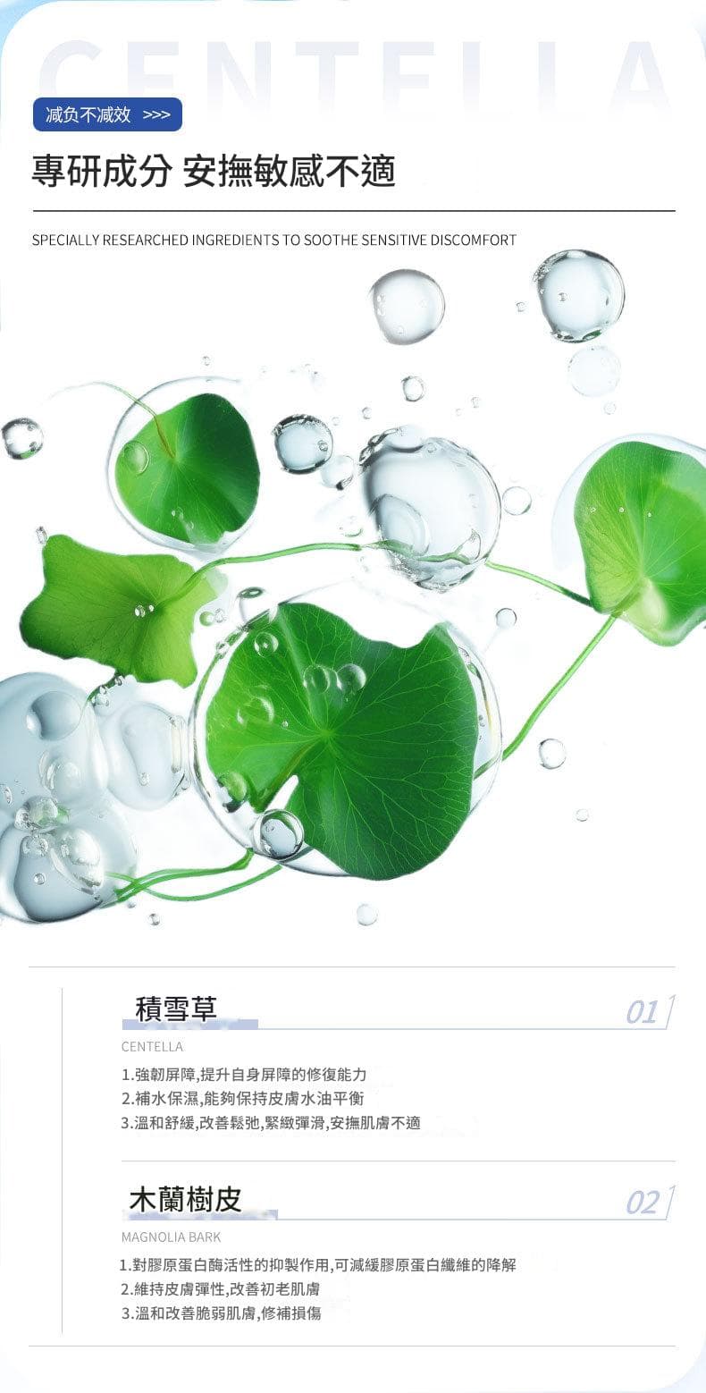 ❶ 高濃度積雪草 + 植萃複配