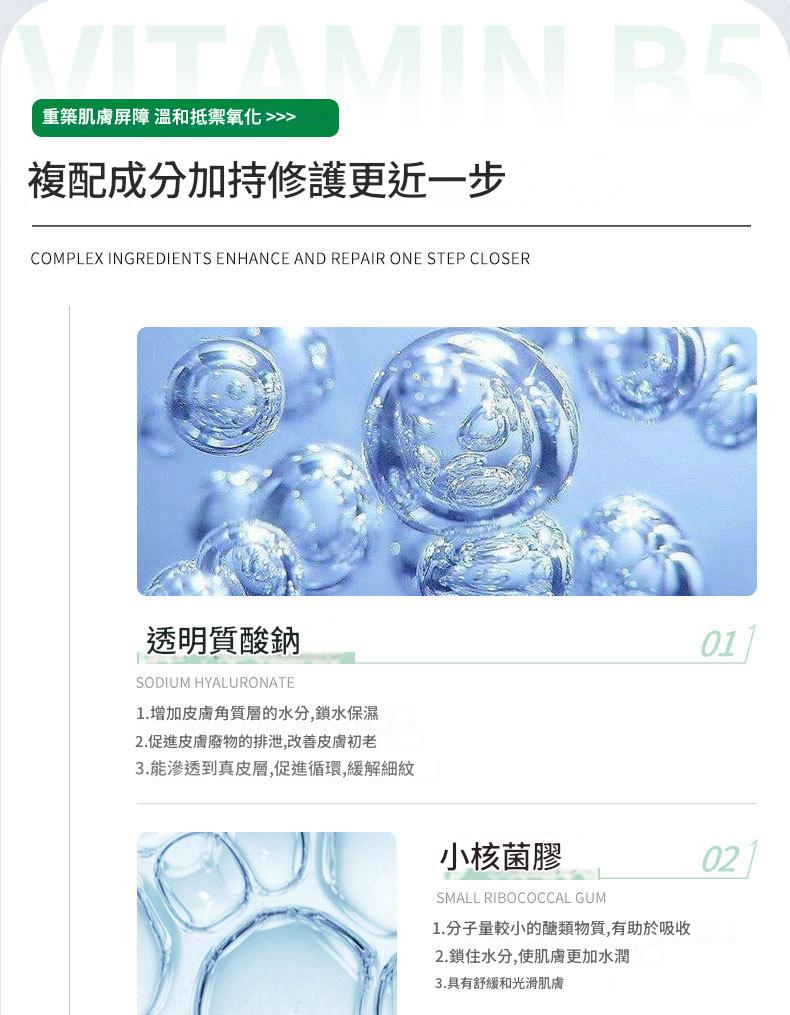 ❶ 維生素原B5 + 積雪草雙重修護