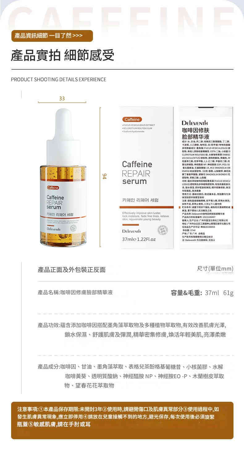 韓國Deleventh 咖啡因修護臉部精華液 (37ml x2支)韓國Deleventh 咖啡因修護臉部精華液 (37ml x2支)