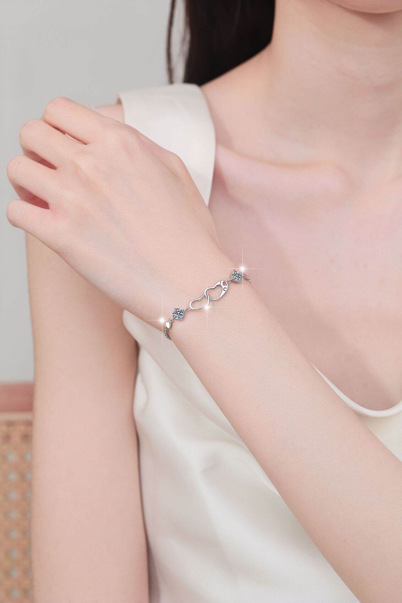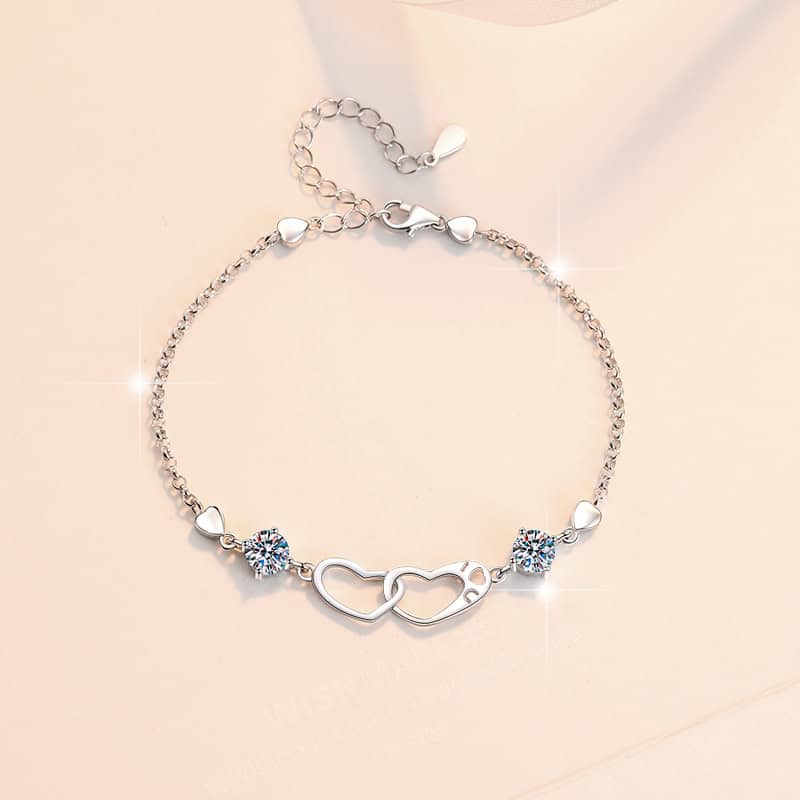 韓版S925純銀心扣心手鍊2顆D色0.5卡莫桑鑽手鏈