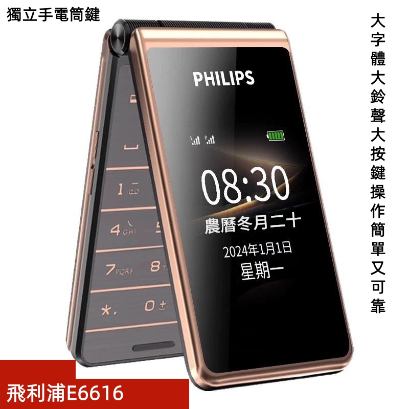 飛利浦E6616經典摺疊老人機 – 4G全網通