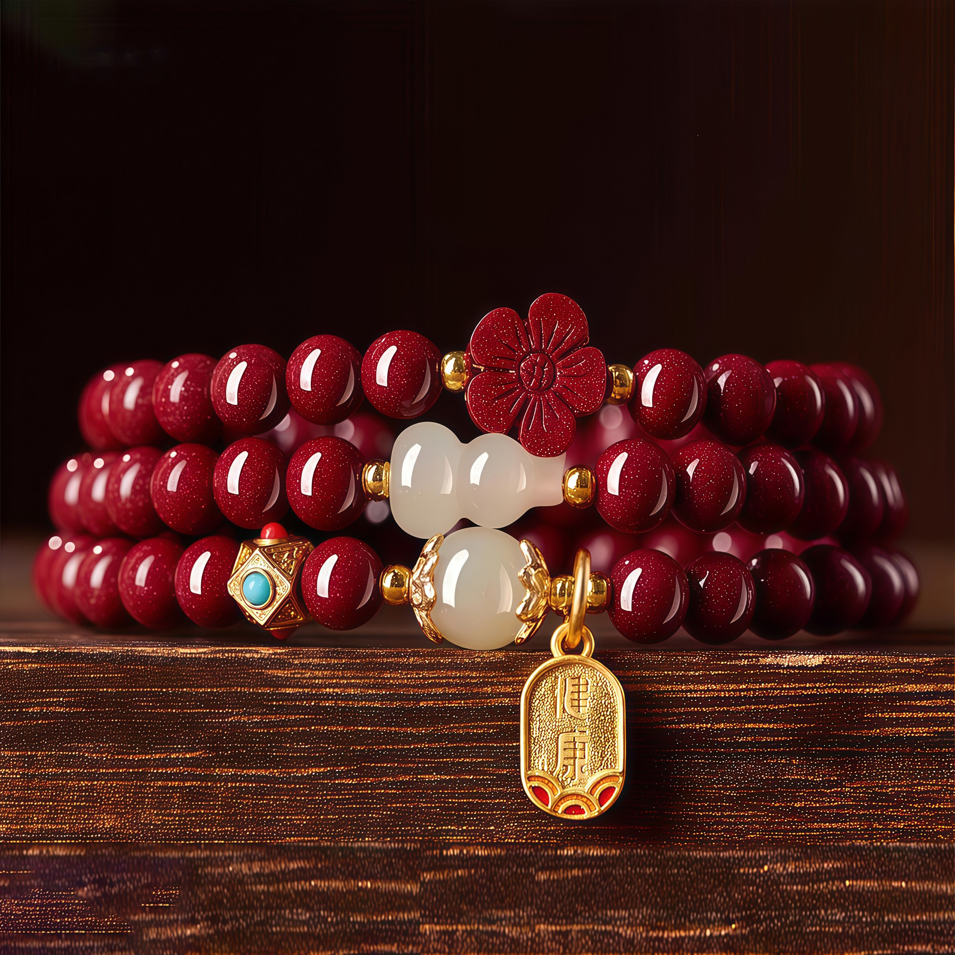 • 主石:高含量天然朱砂,被賦予平安健康、辟邪納福的寓意。