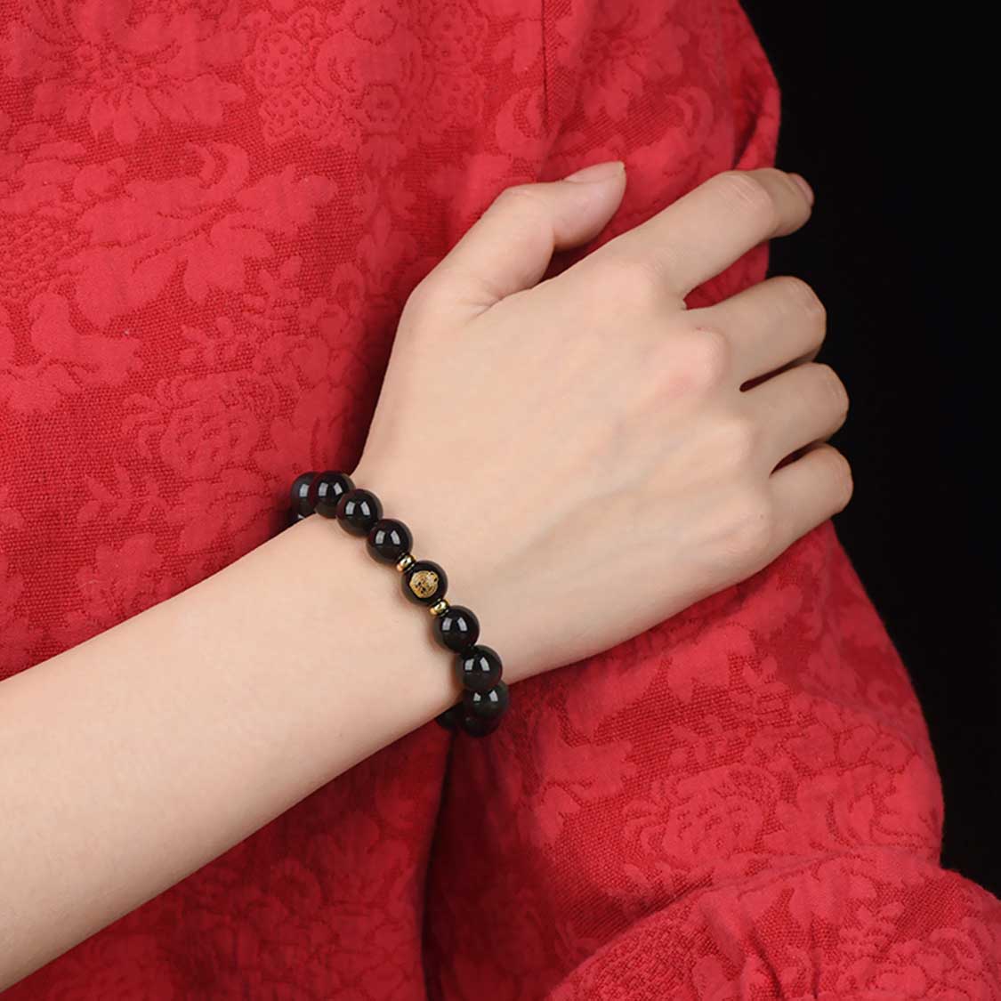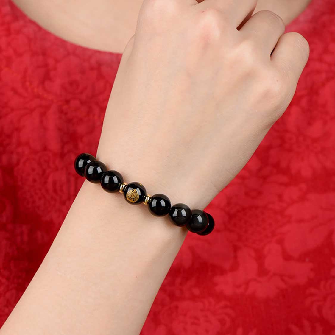 黑曜石手鏈適合長期配戴,可增強效用。建議定期(每月一至兩次)在月圓之夜進行淨化,可將手鏈放在自然光下或清水中輕輕沖洗,讓黑曜石的能量得以重啟與提升。避免與化學品接觸,日常保持乾燥清潔。若手鏈沾上污跡,可用軟布輕輕擦拭。