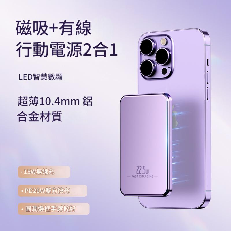 MagSafe 磁吸行動電源|15W無線快充 + PD20W有線快充|超薄設計,攜帶無負擔