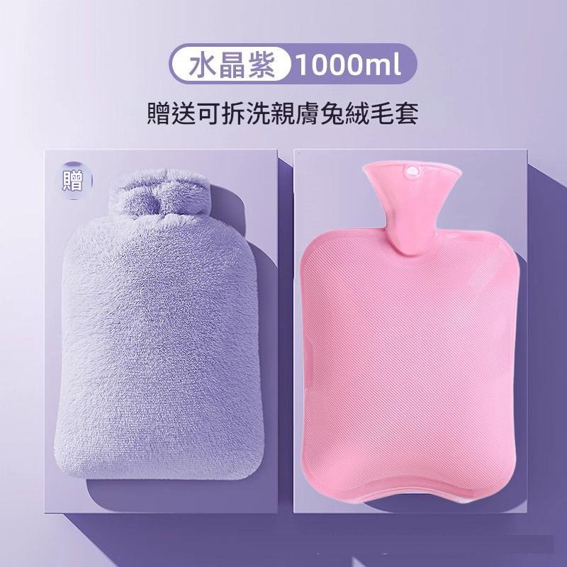 1000ml大容量暖水袋(附贈可拆洗仿兔絨毛套,4色可選)(內膽顏色隨機發)