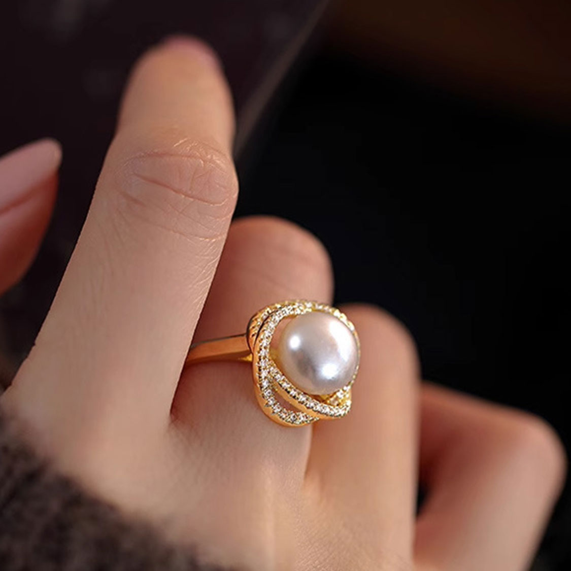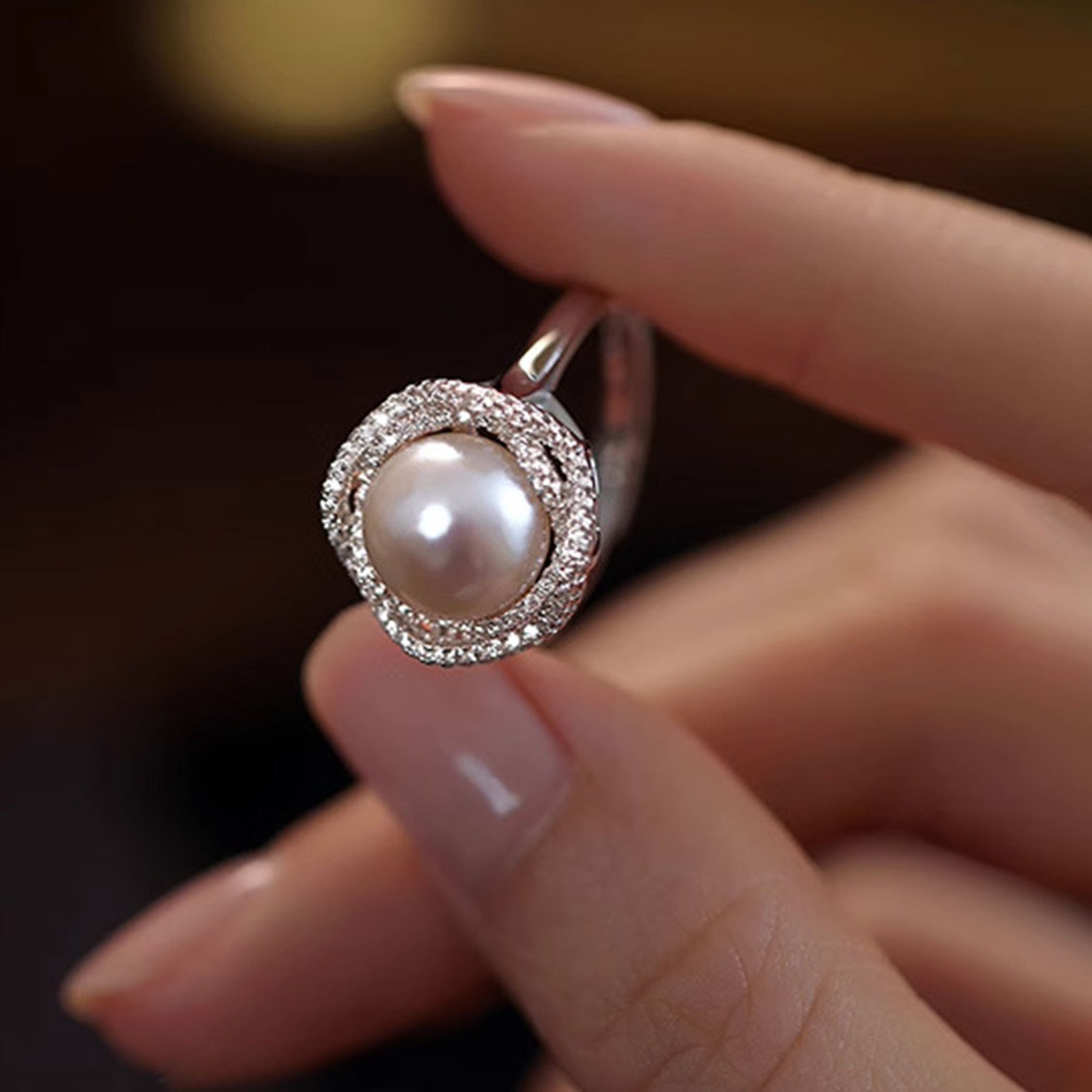 想要一枚一戴上就有儀式感的戒指?這款10mm淡水珍珠花環開口戒指,讓你伸手的瞬間就有「主角光環」。大顆圓形淡水珍珠潔白圓潤,光澤細膩得像指尖盛放的一顆小月亮;外圈多排鋯石環繞成花環造型,層次豐富,在燈光下綻放細緻閃耀,既高級又不顯浮誇。