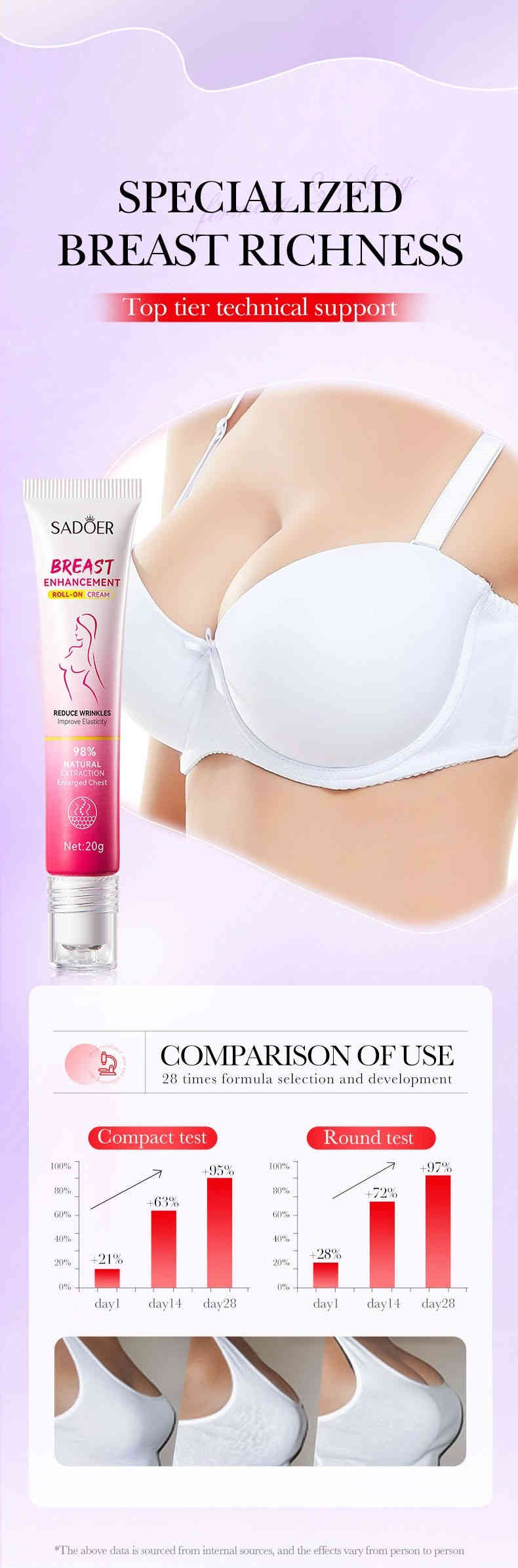 📈 實測有感,多效護理:有助改善胸部鬆弛、外擴、下垂、皺紋等問題,輔助調整胸型、提升雙側對稱度,令胸部視覺更豐潤集中。