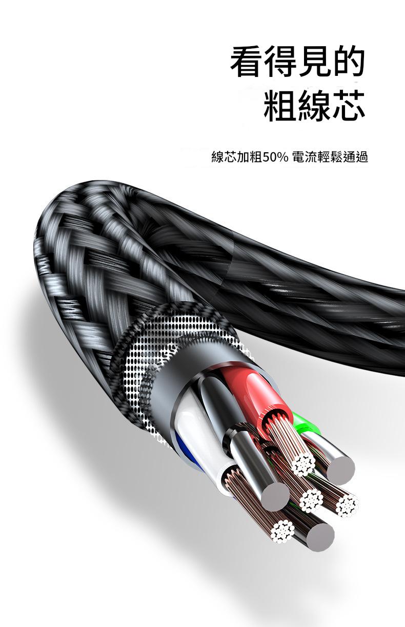 加粗線芯:電流傳輸效率提升50%,支援120W快充與Type-C數據傳輸。