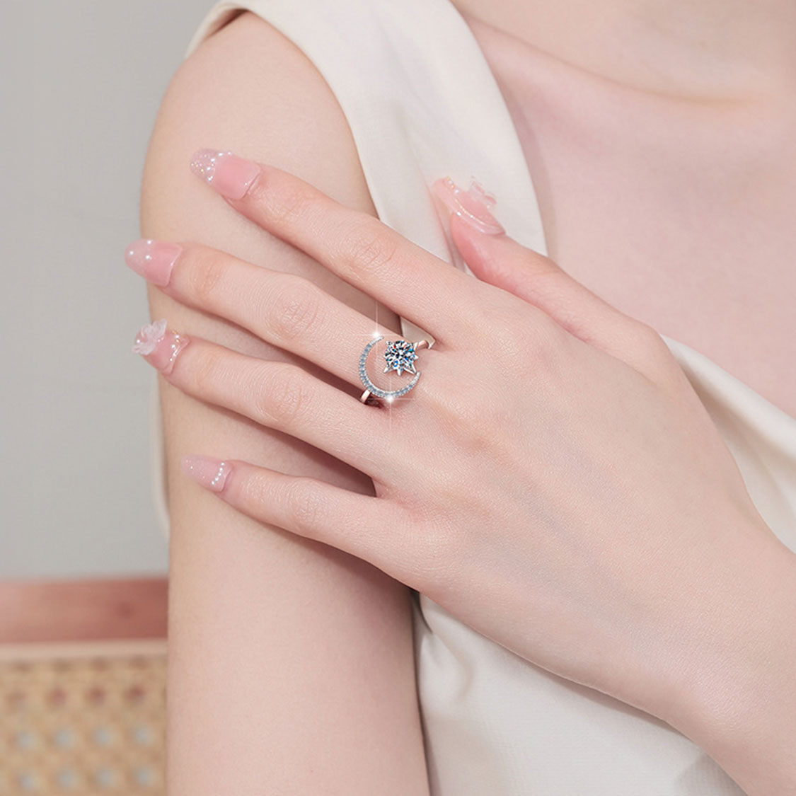 莫桑石是一種在實驗室精密環境中合成的人工寶石,硬度僅次於天然鑽石,卻擁有優於鑽石的光學折射率,能綻放比任何天然鑽石都更加炫彩耀眼的光芒。與天然鑽石相比,莫桑石具有多重優勢:首先,價格親民許多,讓高級珠寶成為日常享受而非奢侈品;其次,製造過程完全無需採礦開採,體現了現代女性對環保永續的執著與責任;最後,莫桑石經過無數年的科學檢驗與市場驗證,證實其具有極高的耐久性與穩定性,日常長期配戴也不會褪色、失光或磨損,堪稱是真正的一生珍寶,每一克拉都能永遠保持最初的璀璨光彩。在這款開口戒指上,莫桑石的璀璨光芒與靈活設計相得益彰,象徵著你對品質與自由的雙重追求。