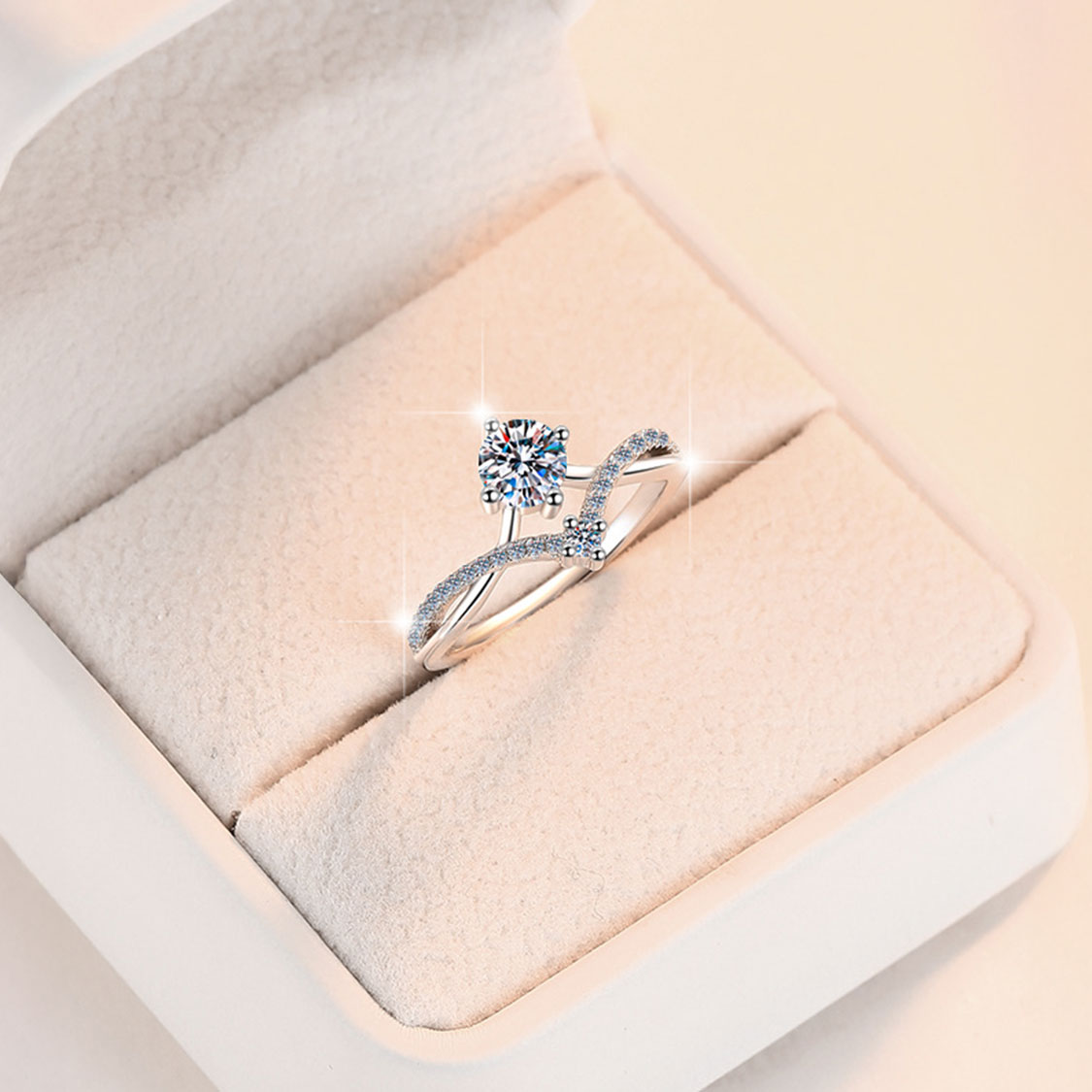 這是一首用銀色譜寫的優雅之歌,一場在指尖綻放的光與影的舞蹈。這款925純銀莫桑石雙層開口戒指以創意設計詮釋現代女性的獨特品味與自信風采。戒指採用創新的雙層框架結構,宛如兩條優雅的銀絲在指尖輕輕纏繞,既顯示出設計師的精妙構思,又展現出女性的靈動與優雅。開口款式設計更提供了完全的尺寸調節自由,讓每一位佩戴者都能找到最舒適與完美的配戴方式。