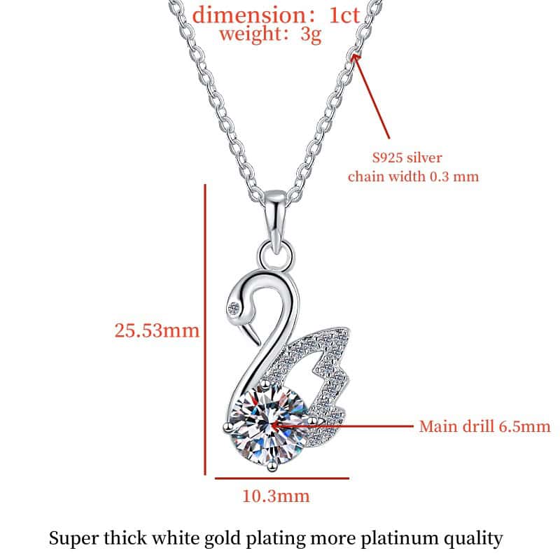 925純銀輕奢小眾1卡莫桑鑽天鵝吊墜鎖骨鏈頸鍊