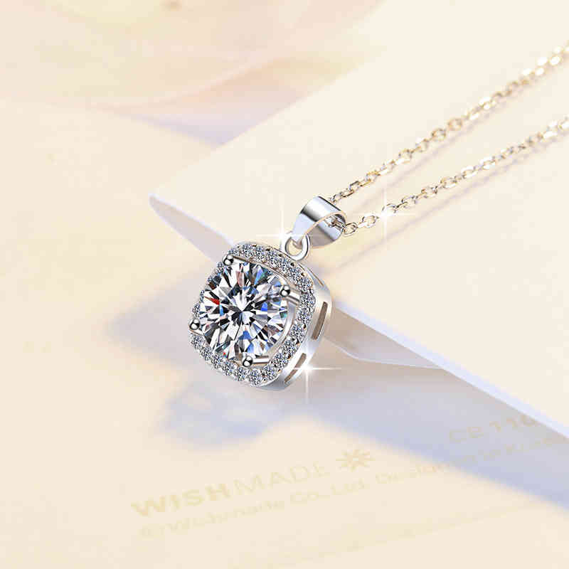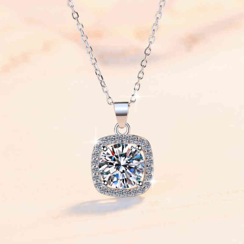 925純銀1卡/2卡方形莫桑鑽吊墜頸鍊