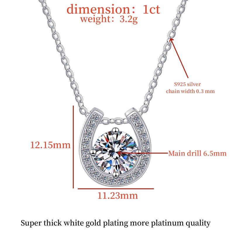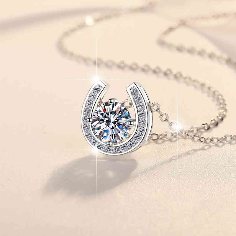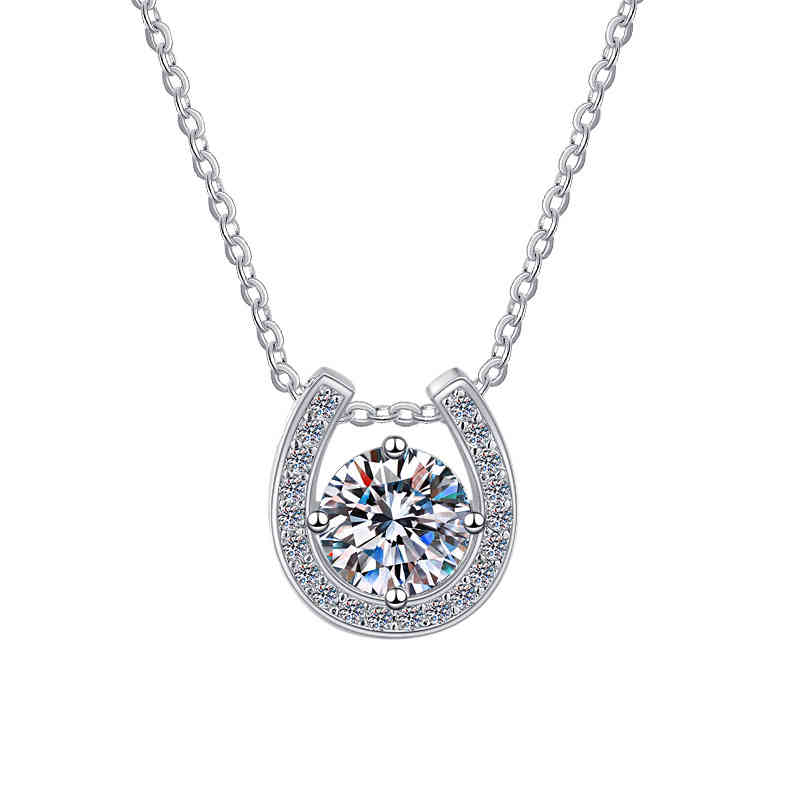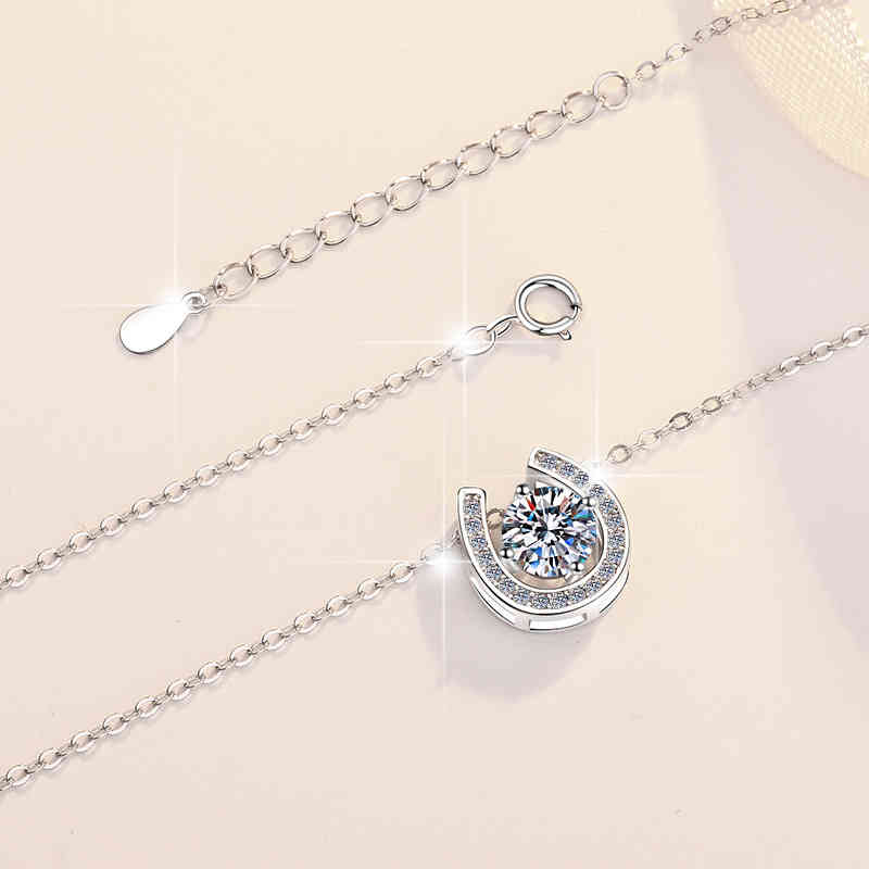925純銀U型馬蹄1卡莫桑鑽吊墜輕奢小眾設計頸鍊