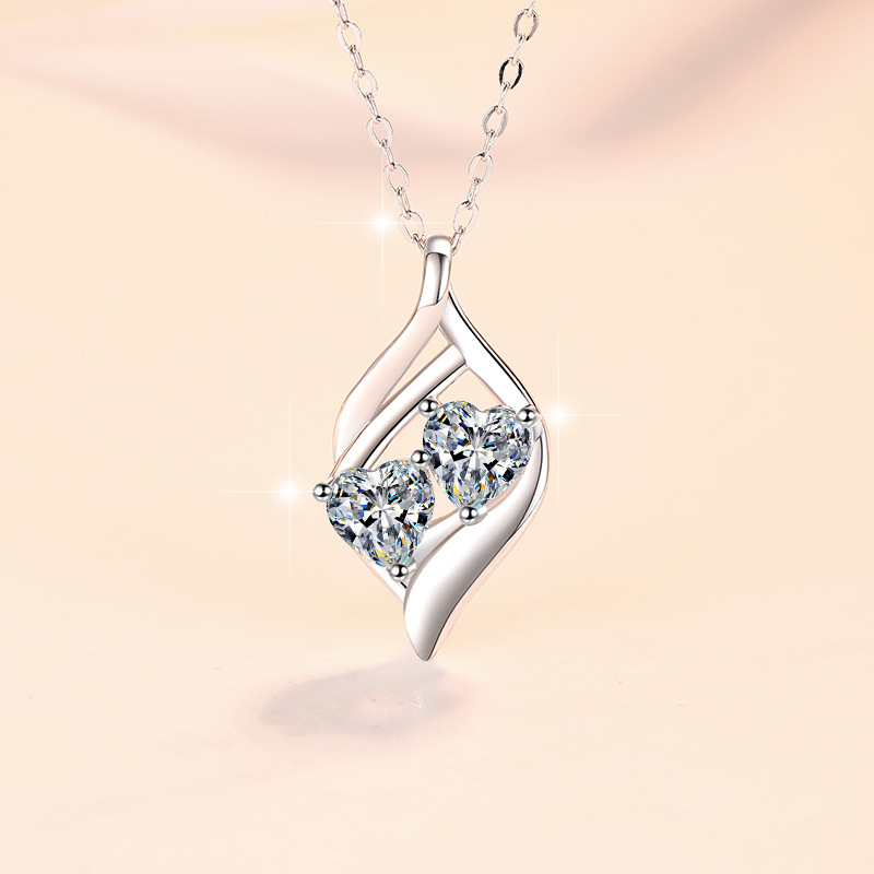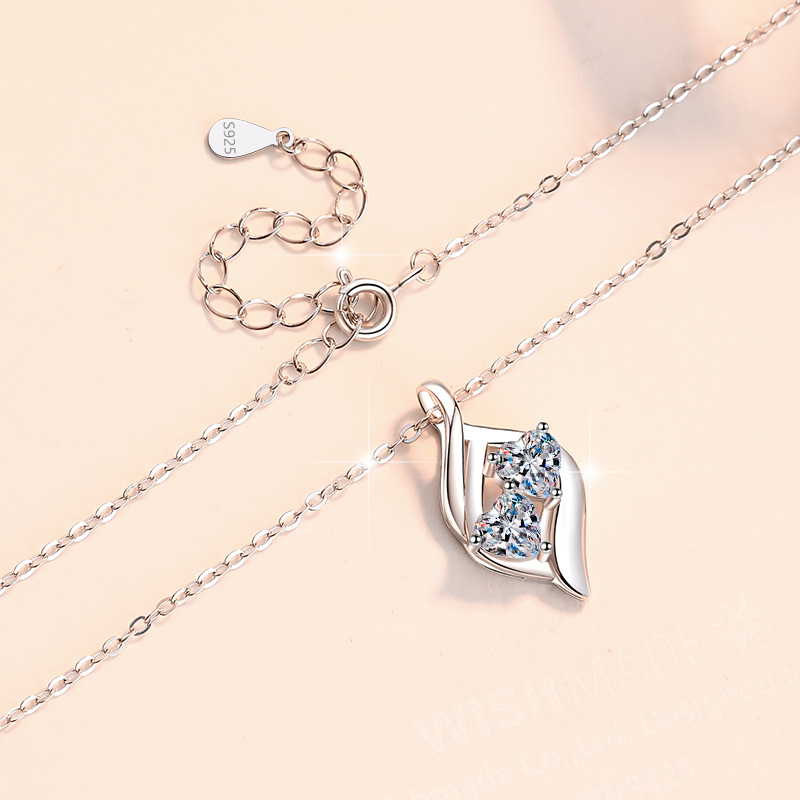 S925銀飾雙心形莫桑石項鏈(D色莫桑石)0.5CT*2