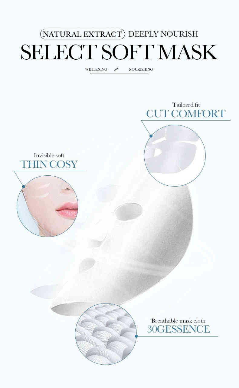 溫和親膚材質:剪裁貼合臉型,輕薄透氣不悶膚,敷感舒適。