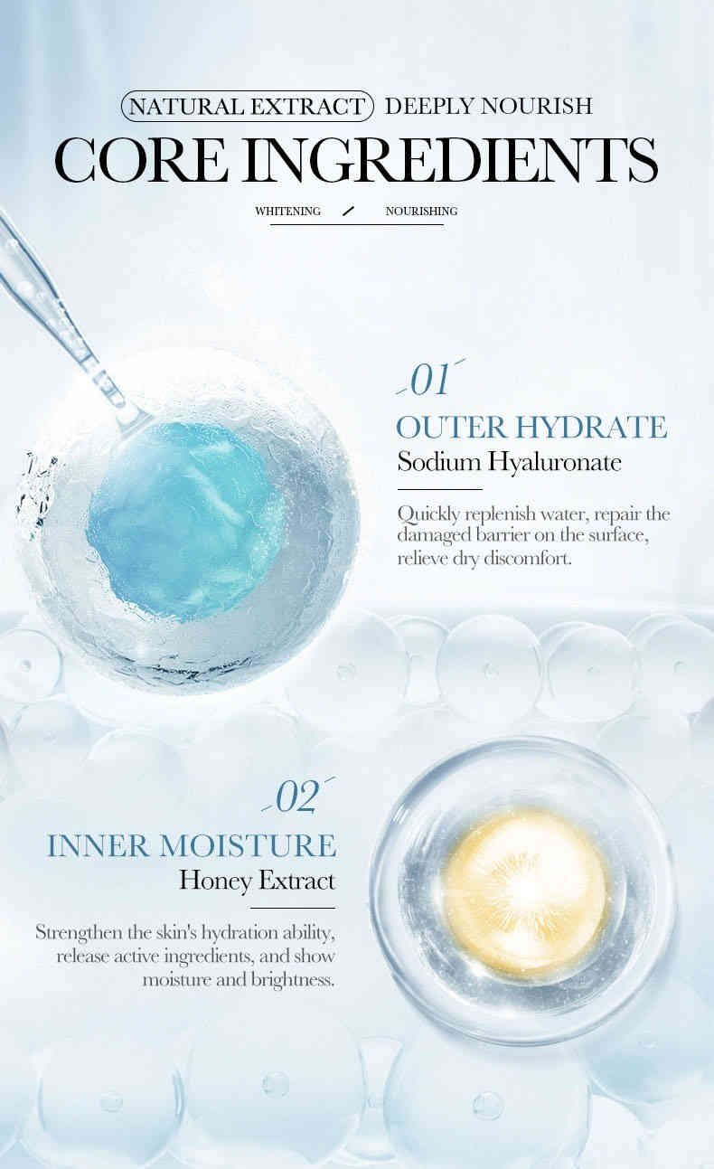 珍珠美白配方:深入滋養肌膚,有效 提亮膚色、淡化痘印,重現透亮光采。