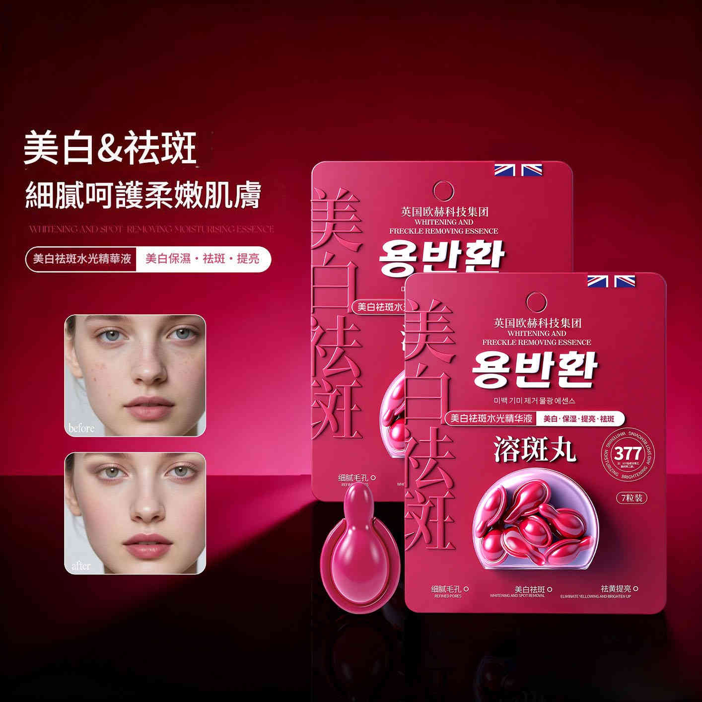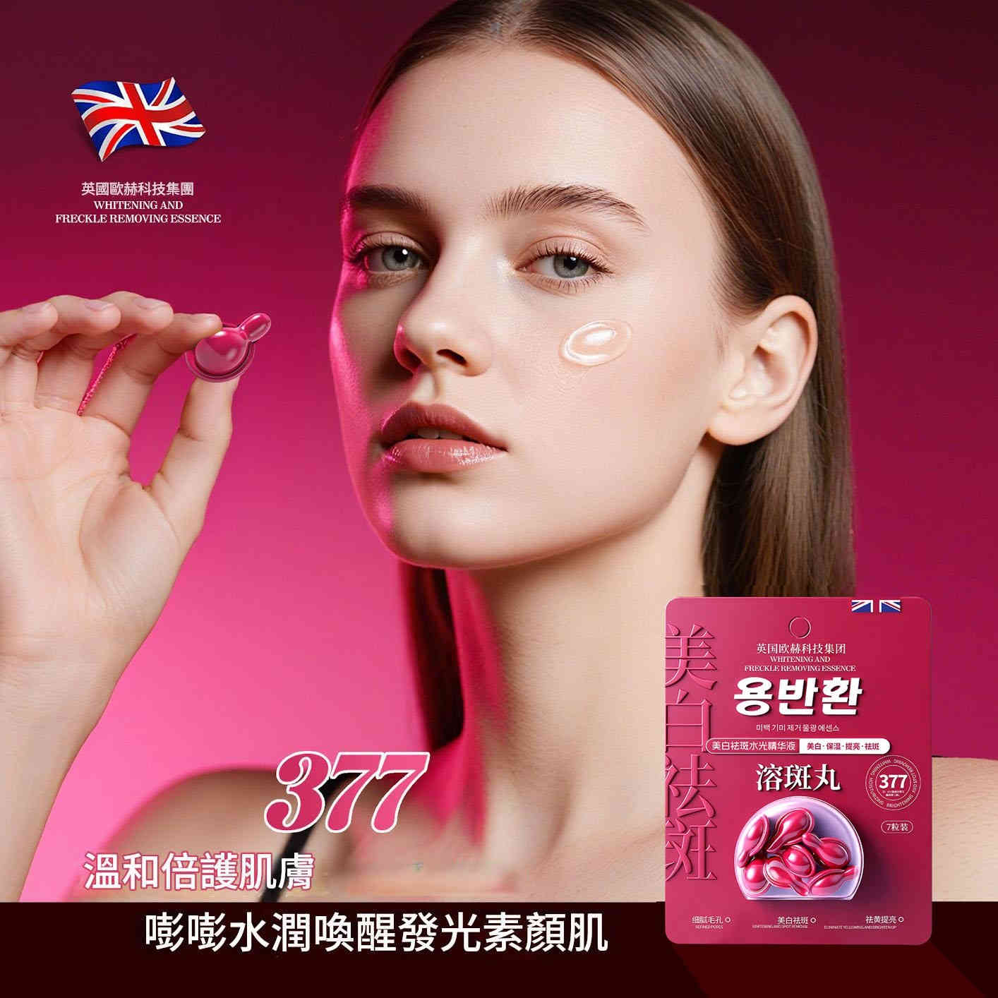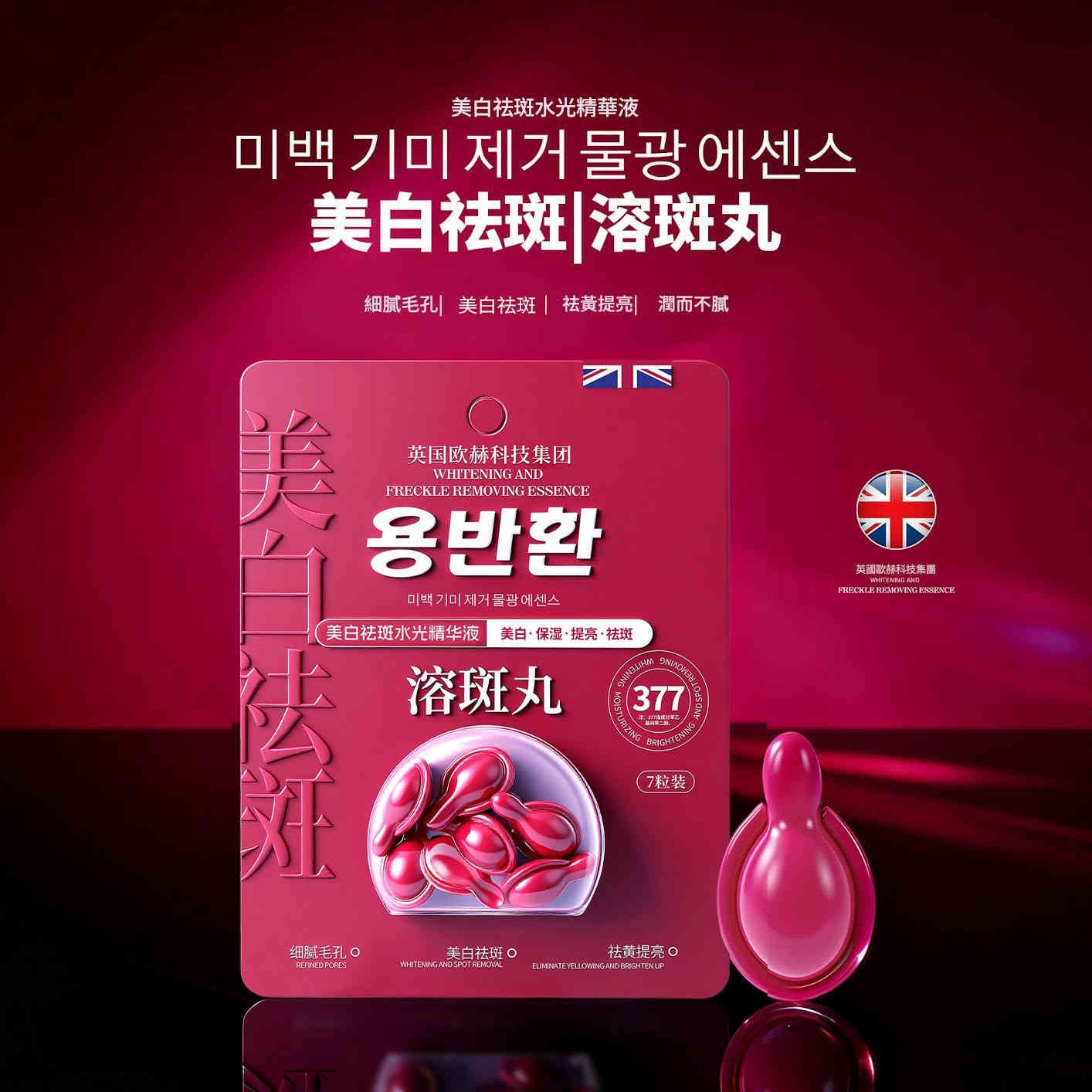 - 「溶斑丸」專利設計:每粒獨立包裝,蘊含37.7%高濃度活性美白成分,精準釋放,避免氧化失活。