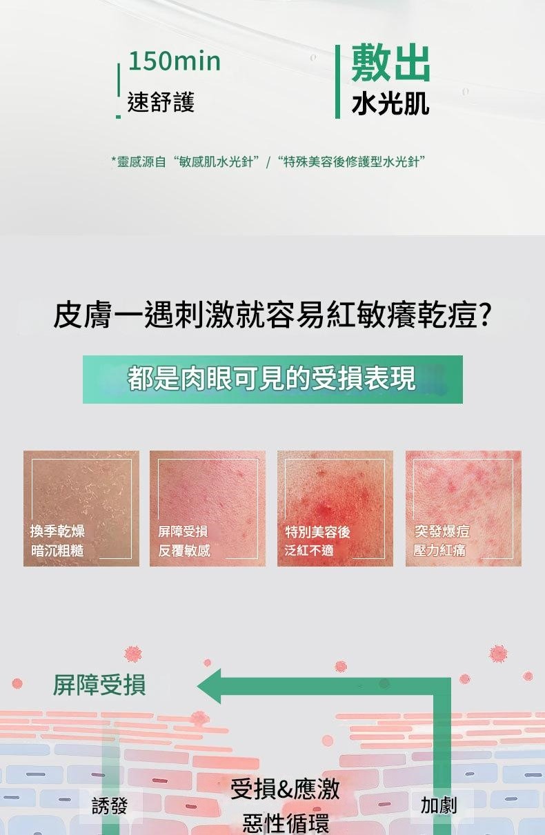 理膚泉同款王牌修護成分,超強滲透力,一邊深層補水,一邊修護受損屏障,加速肌膚自癒。復配升級|4大補水因子