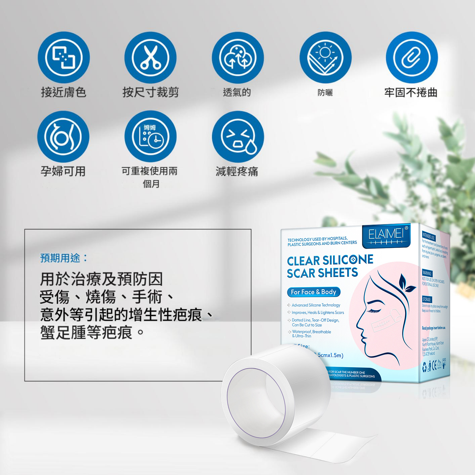 購買即可賺取 32 積分!健康護理產品ELAIMEI 專業醫療級透明矽膠疤痕貼X2