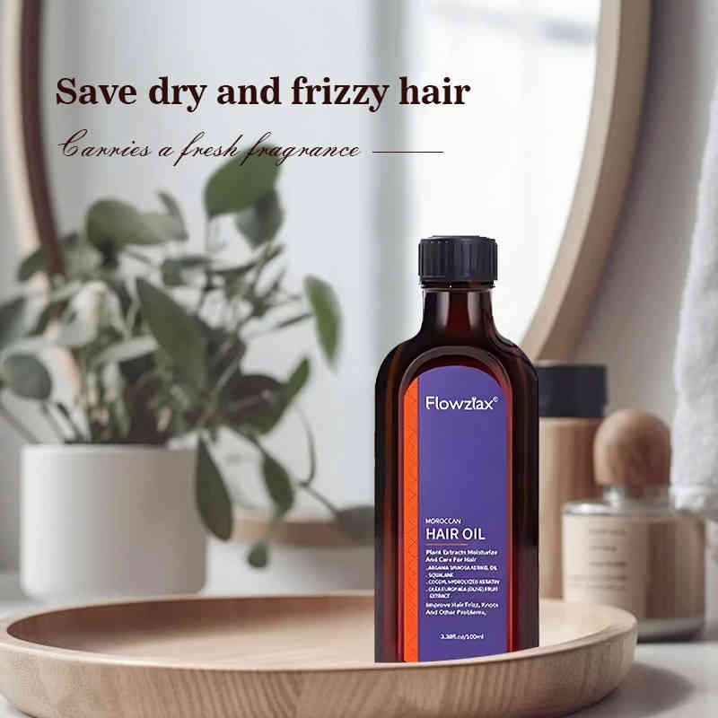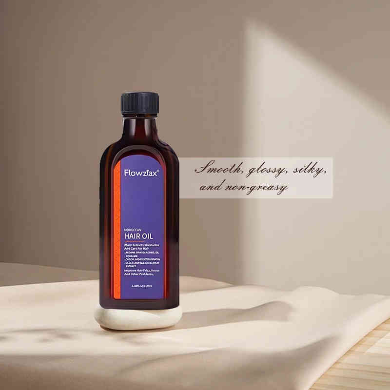 Flowziax® 摩洛哥護髮精油精選天然摩洛哥堅果油,富含高抗氧化成分,質地細膩不油膩,能快速滲透髮絲、深層修護受損髮質,有效抗毛躁、抗靜電、改善分岔,讓頭髮重現柔順、光澤與強韌。