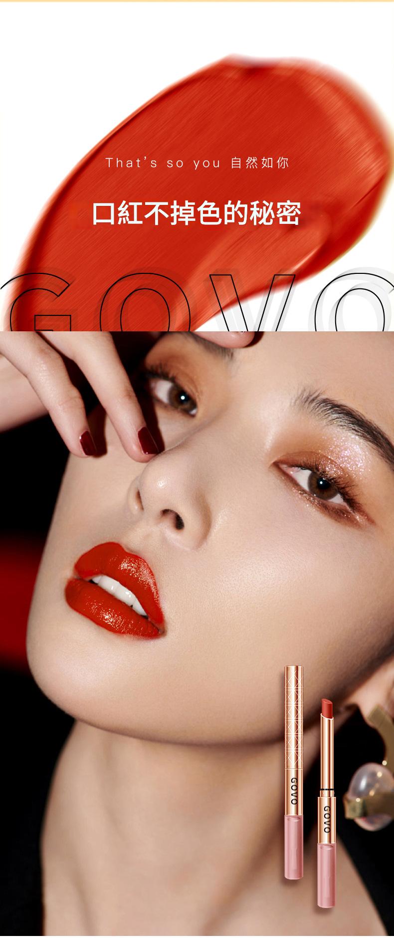 GOVO 唇色印記,不僅是一支口紅,更是你自信笑容的隱形守護者。從此盡情享受美食、暢快談笑,唇色始終如初,美麗不留痕跡。