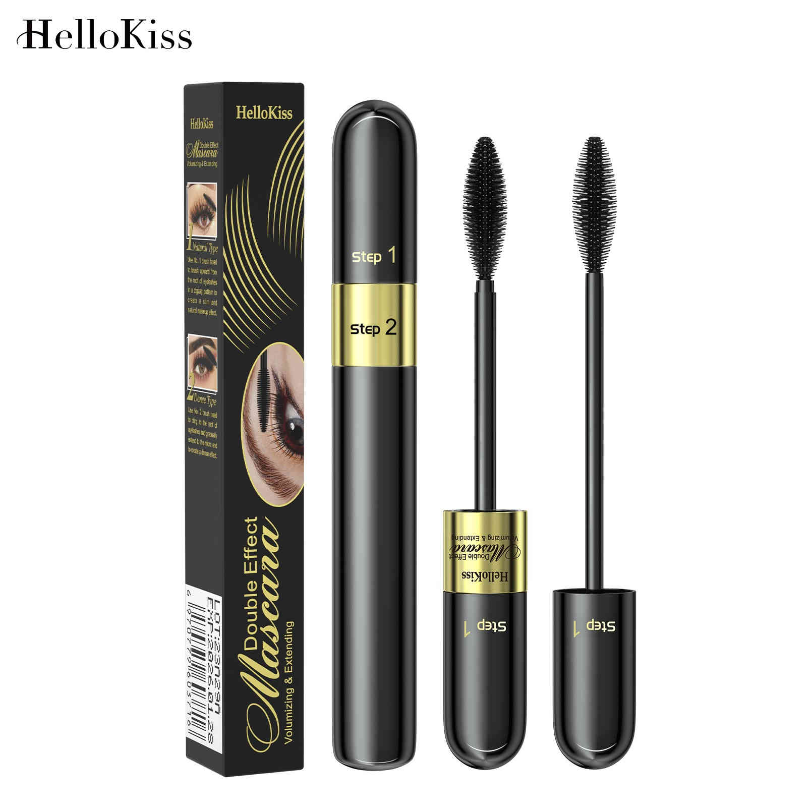 HelloKiss 雙效睫毛膏採用獨特「兩步驟刷頭設計」,一管搞定捲翹、纖長、濃密三大需求,防水抗汗,全天候持妝不暈染,讓你輕鬆刷出宛若天生的完美睫毛!