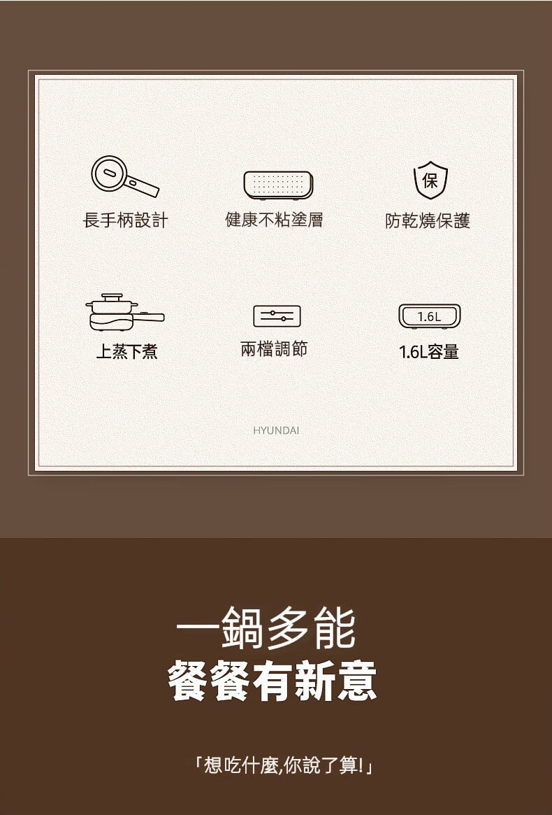 Hyundai 現代 多功能電煮鍋帶蒸籠