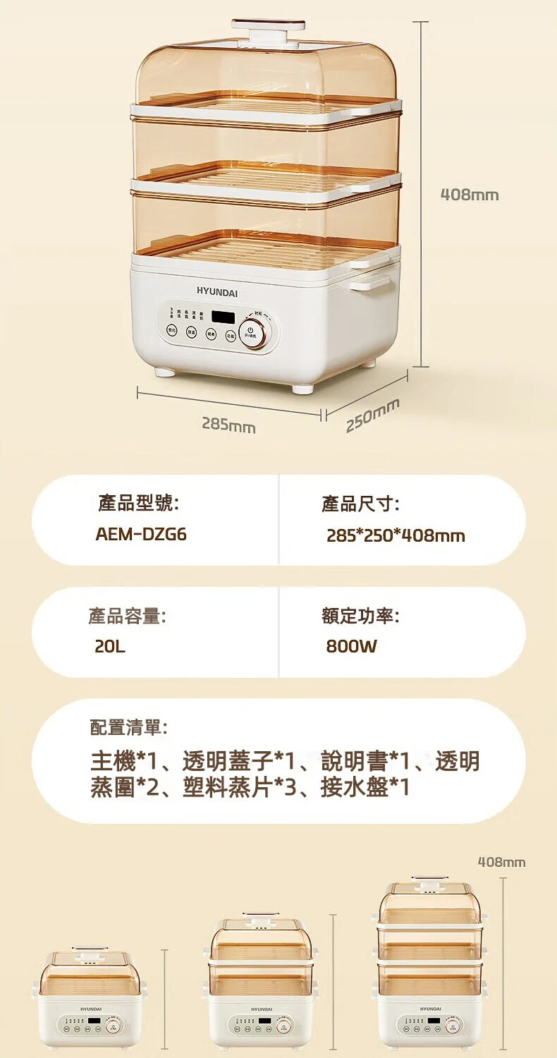 Hyundai 現代 20L大容量多功能電蒸鍋Hyundai 現代 20L大容量多功能電蒸鍋