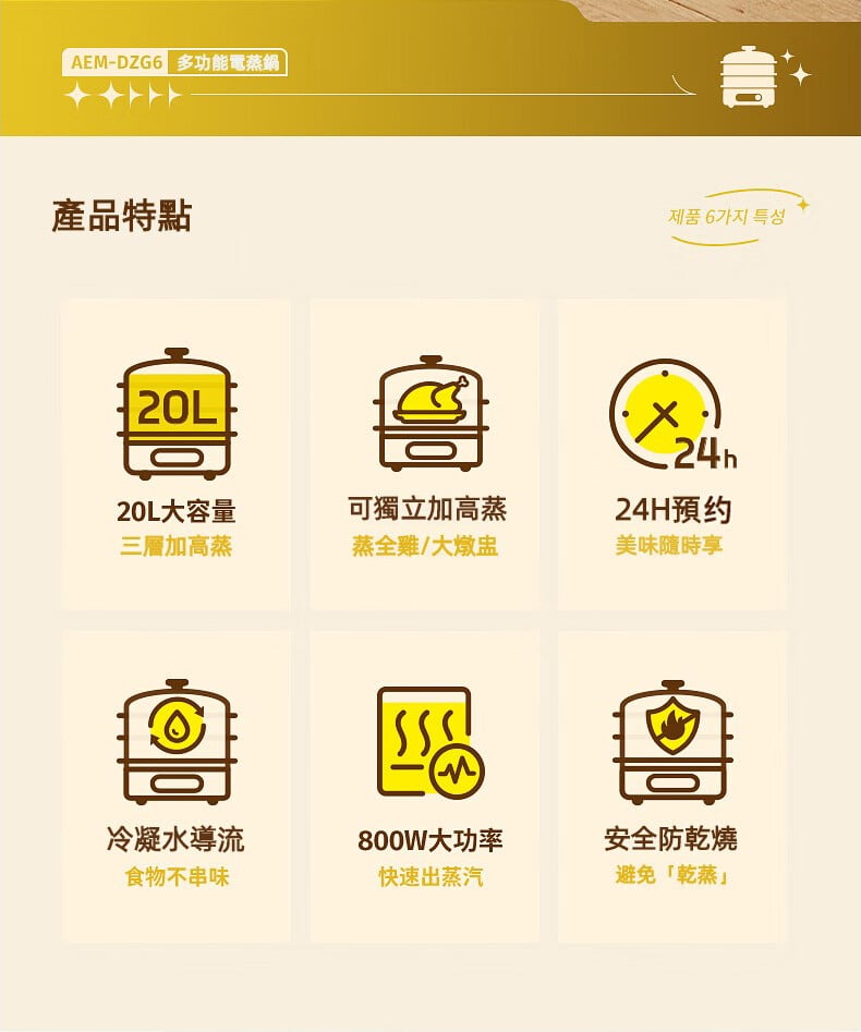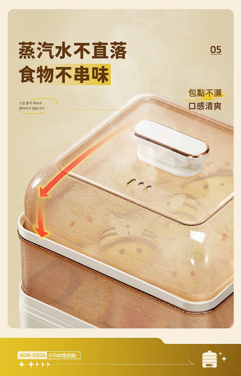 三層蒸籠自由組合,20L大容量,支援中空加高蒸,可放大燉盅