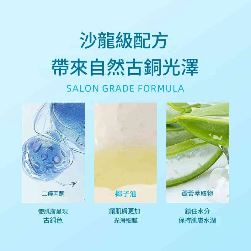 富含天然成分,可依使用次數自由調節深淺,避免色塊或突兀感,呈現宛若天生的日曬美感。 -