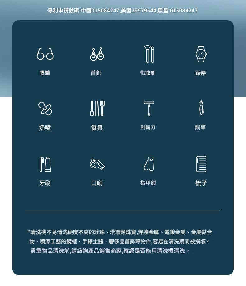 適合清洗眼鏡、首飾、化妝刷、奶嘴、牙刷等日常小物,讓每一件物品,都能如初見般潔淨亮麗。