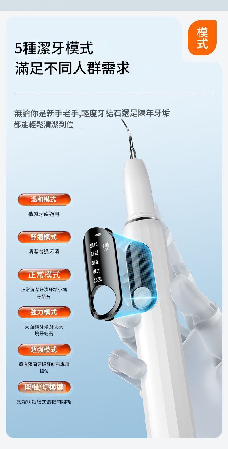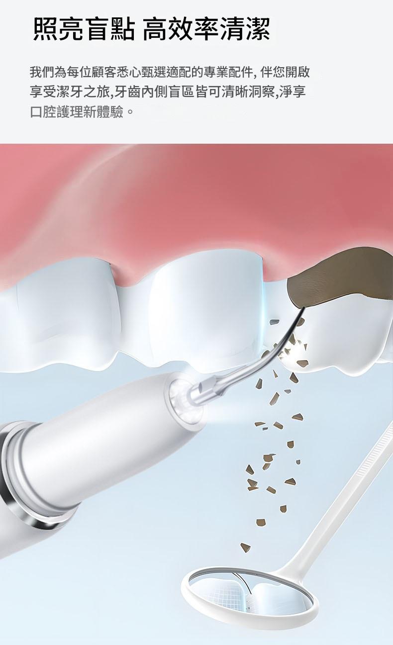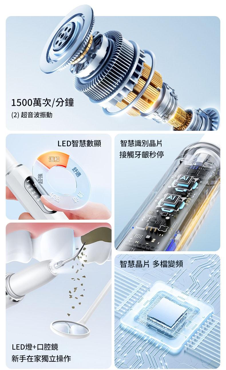 每分鐘高達 1500 萬次 超音波震動,高效震碎頑固牙結石、牙垢。
