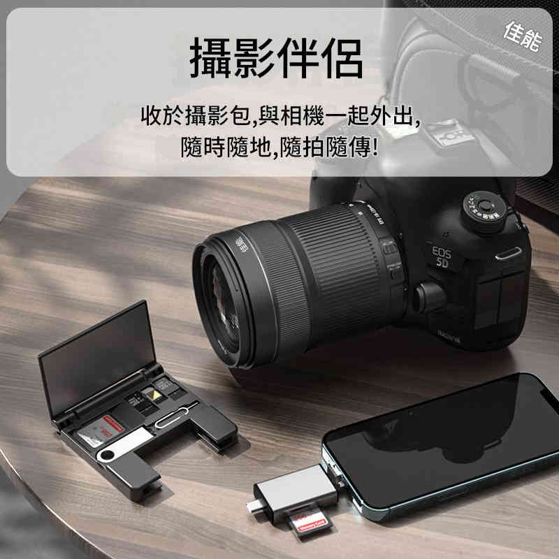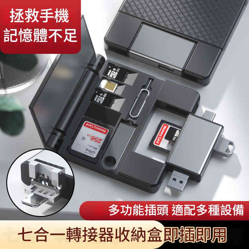 創新型七合一讀卡機收納盒,集讀卡、儲存、轉接於一身,支援SD卡、TF卡(雙卡槽)、SIM卡、取卡針、記憶體及七合一讀卡器,完美整合儲存與傳輸功能。無論是攝影愛好者、日常辦公還是外出旅行,一盒輕鬆搞定!