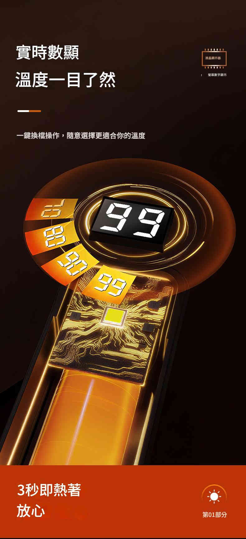 智能恆溫與數顯螢幕:一鍵切換三檔溫度,LED螢幕即時顯示溫度,貼心調控最舒適的溫暖。