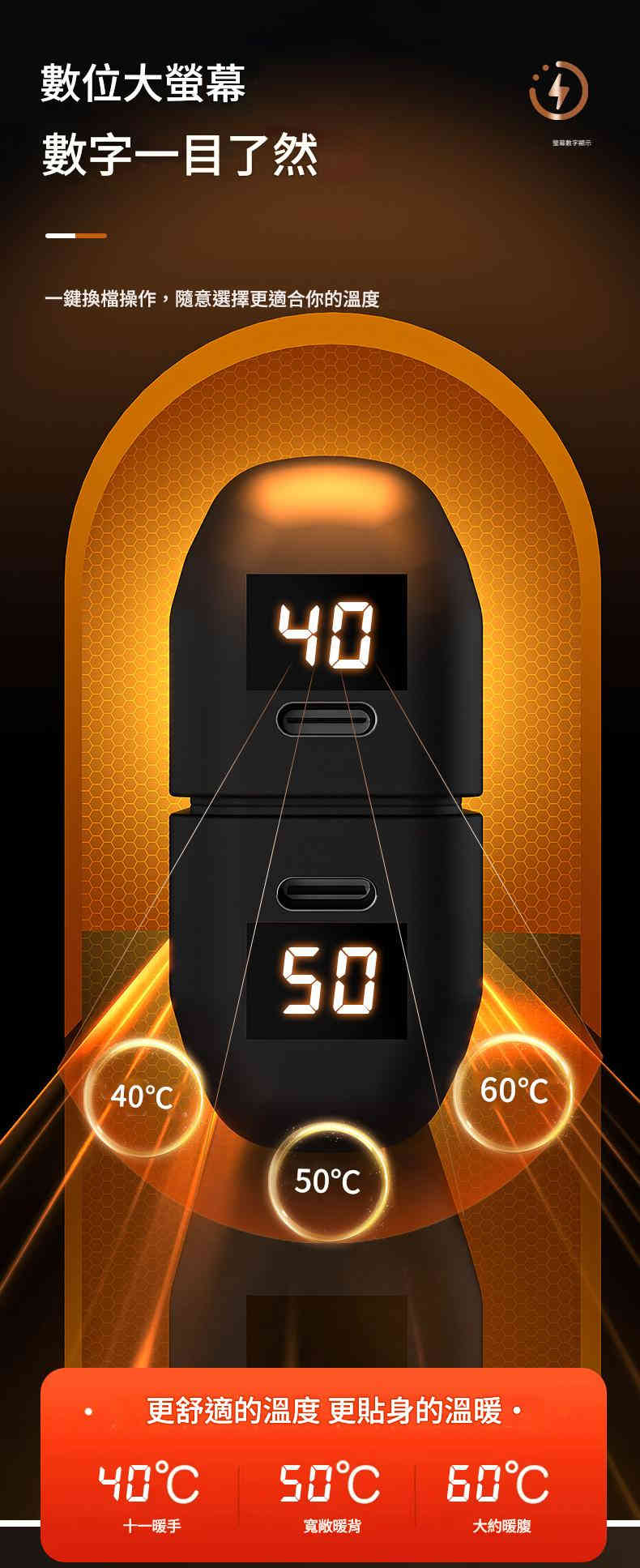 分體式磁吸設計:超強磁力可合體使用,也可分離暖手、暖腹、暖背,自由搭配多種取暖方式。