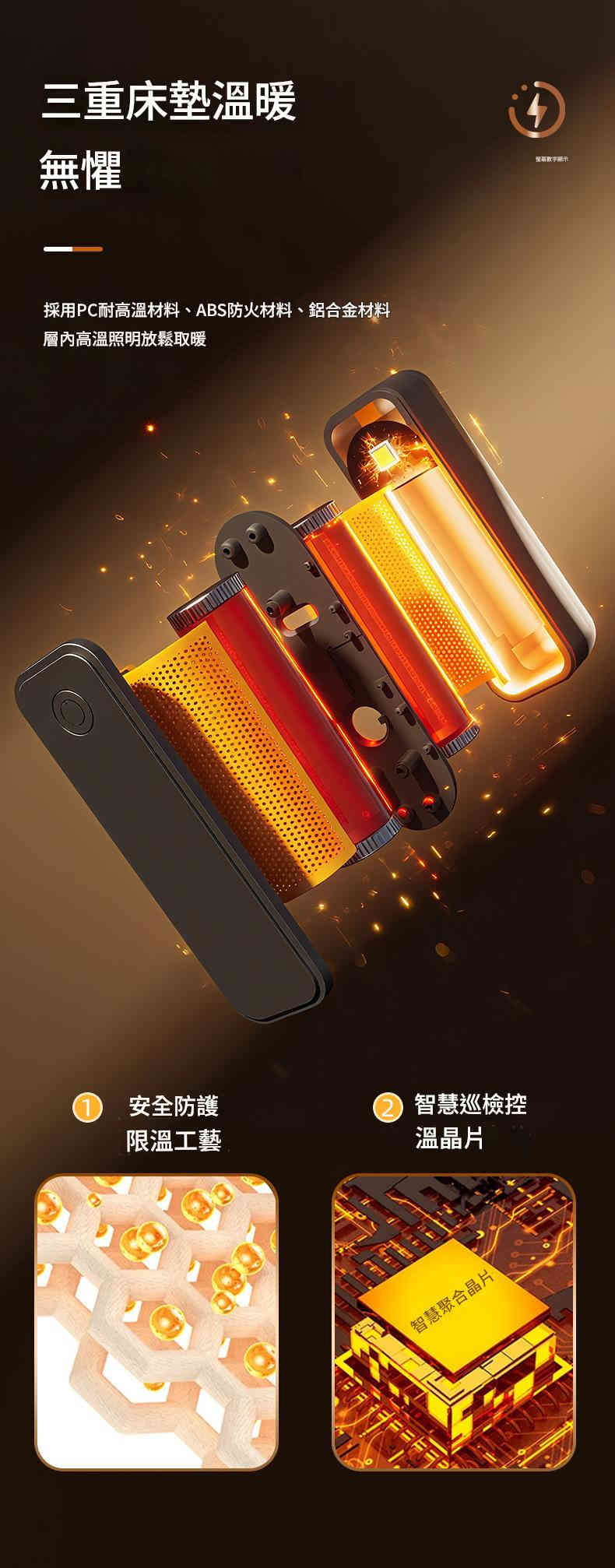 三重安全防護:通過國家安全認證,具備過熱保護、斷電保護與阻燃材料,溫暖使用更安心。