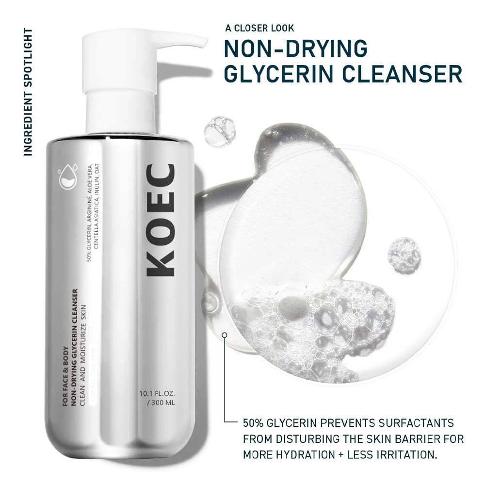 讓 KOEC 非乾澀甘油潔膚露,成為你每日潔膚儀式的溫柔首選,洗出乾淨,留住水潤。