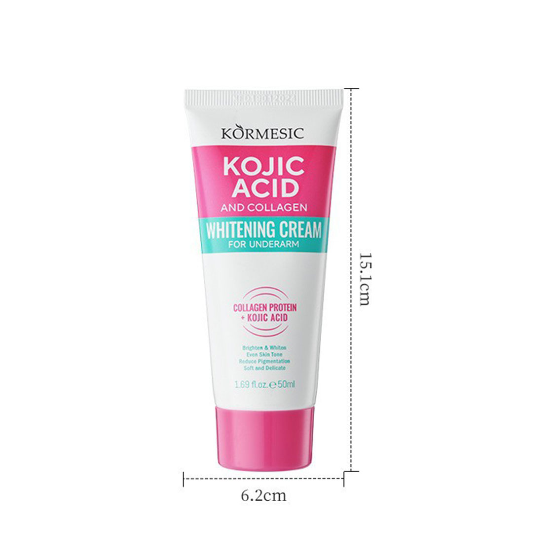 KORMESIC 曲酸膠原蛋白腋下美白霜是一款專為腋下及其他敏感部位肌膚設計的美白護理產品。核心成分採用高效曲酸搭配膠原蛋白,能有效抑制黑色素生成,減少色素沉澱,同時為肌膚提供深層滋潤與營養。